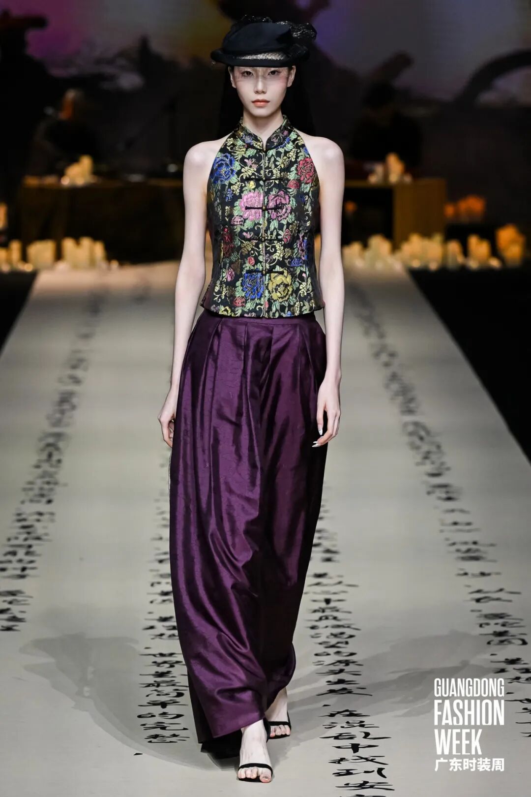 乐章转向明快,丰富而饱含生命力的色彩在此篇章中大胆绽放。设计师巧妙调和传统色谱与现代审美,将非遗面料的华彩与当代设计的活力激情碰撞。张扬却不失章法的色彩组合,配以利落新颖的剪裁,诠释着新时代文化自信下蓬勃昂扬、敢于表达的精神风貌。
